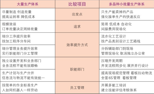 图二欧倡研究大量生产体系(大规模生产)与多品种小批量生产体系(精益生产组织)的比较